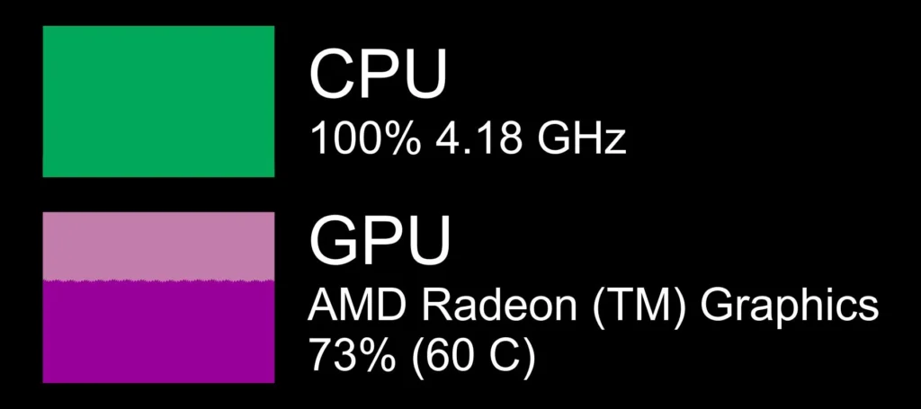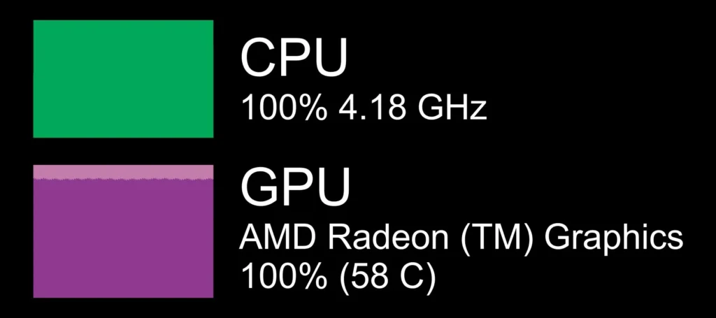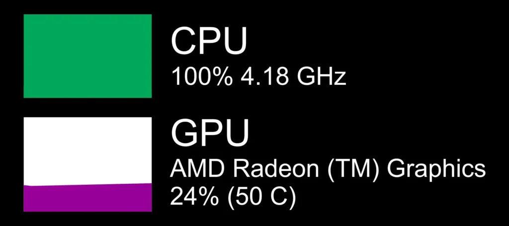 - CPU or GPU usage stays at 100% while the other remains low